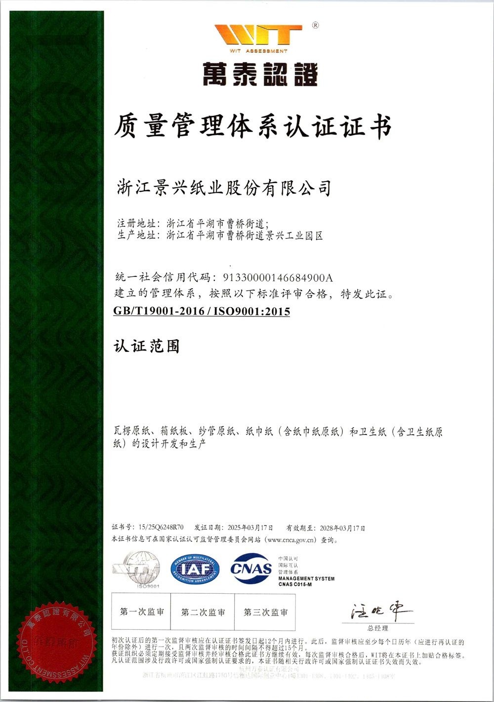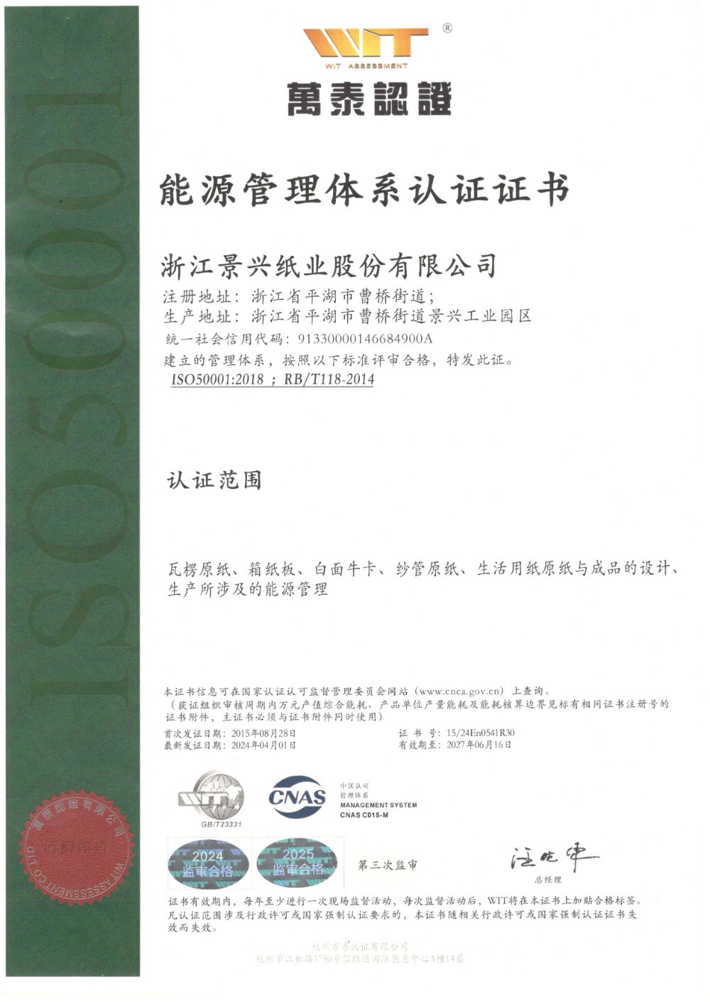 8868体育手机版登录入口于1996年率先在同行业通过ISO9001质量管理体系认证,2002年通过ISO14001环境管理体系认证,2014年通过OHSAS18001职业健康安全管理体系认证,2015年通过GB/T23331能源管理体系和FSC®森林体系认证,2018年通过两化融合管理体系认证。